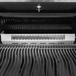 The Napoleon Prestige BIP500RBNSS-3 500 blends quality and performance into one package. The Napoleon BIP500RBNSS-3 built-in natural gas grill has four stainless steel tube burners that provide up to 48,000 BTUs of cooking power. The grill has stainless steel cooking grates with 500 square inches of main cooking area and 260 square inches across the plated steel warming area for a total of 760 square inches of cooking area. The Napoleon Jetfire ignition with crossover lighting starts each burner individually for a reliable start-up every time and allows you to light all the burners at the same time. The stainless steel Wave cooking grids create the trademark Napoleon sear lines and allow for better heat retention. The dual-level, stainless steel, sear plates vaporize drippings, control flare-ups, and keep your food moist. This Prestige 500 also has an 18,000 BTU stainless steel rear infrared burner and rotisserie kit for roasting. The hood features an Accu-Probe temperature gauge, cast aluminum end caps, and retains heat for oven-like performance. The SafetyGlow control knobs turn from blue to red when a burner is in use. Clean-up is a cinch with the full-width removable drip pan. This Napoleon grill is manufactured in Canada.